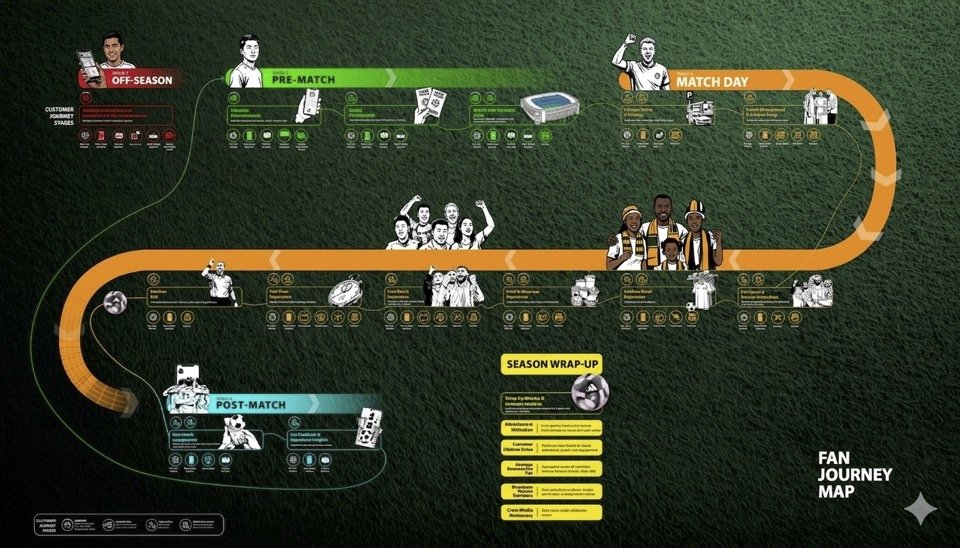 Fan Journey Mapping is a structured methodology that captures every key step and touchpoint, physical and digital in a fan’s recurring relationship with your club or league, building on the matchday insights identified through FACT.